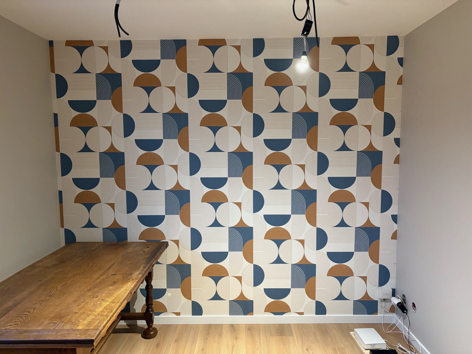 Possibilité grâce au capteur de teinte de choisir une couleur présente dans le papier peint et de la faire préparer pour peindre les autres murs.