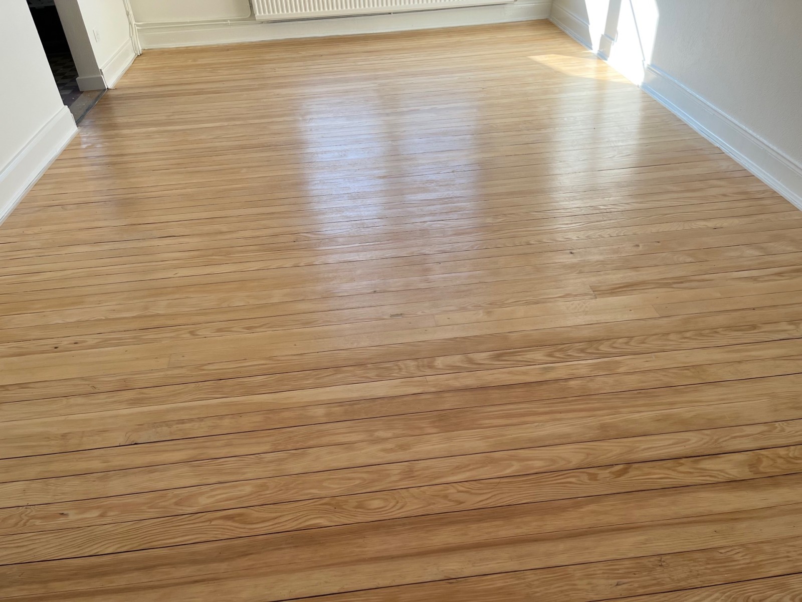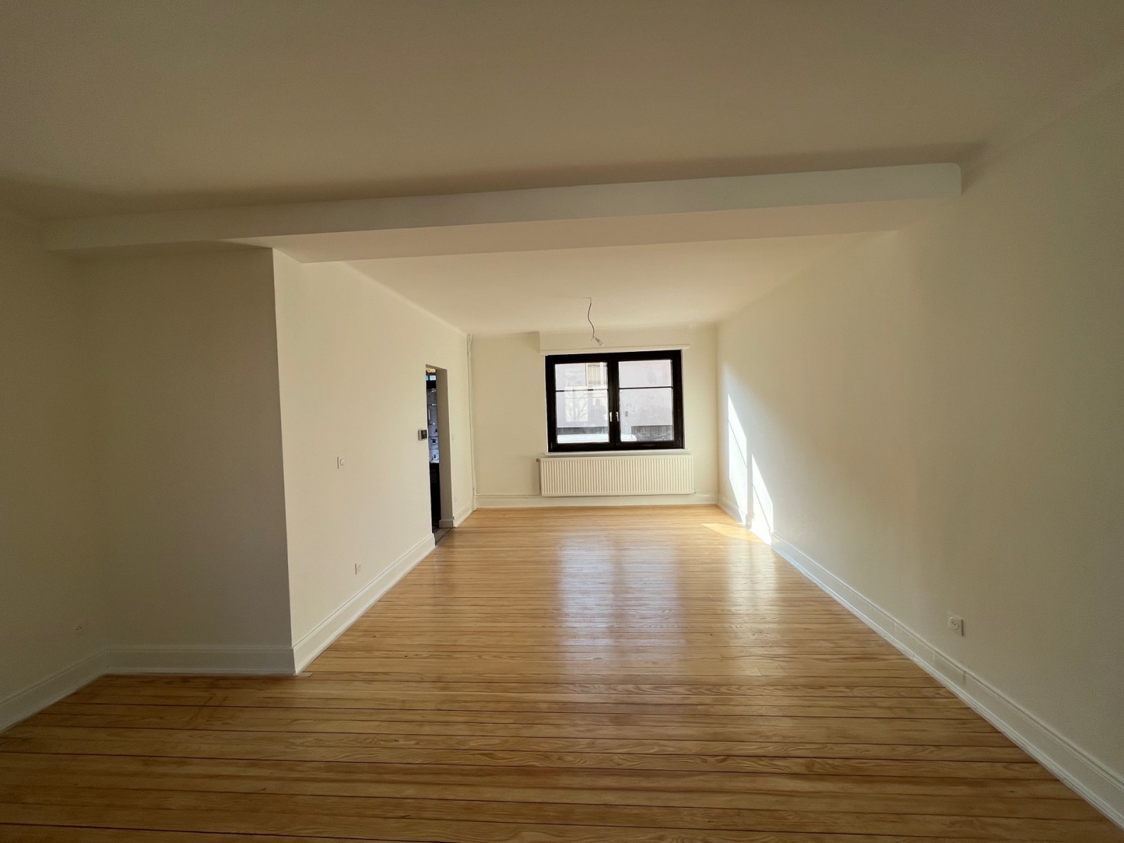 Lors de ces travaux de rénovation intérieur à Molsheim, nous avons déposé les anciennes moquettes, puis poncé et vitrifié les sols d’origine de la maison. Au niveau de la pièce de vie, un mur ayant été enlevé par le maçon, nous avons rattrapé le parquet avec des lames dans un gabarit semblable à l’existant pour être le plus discret possible.
